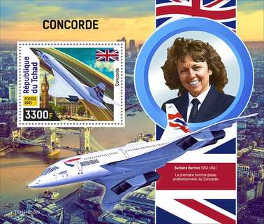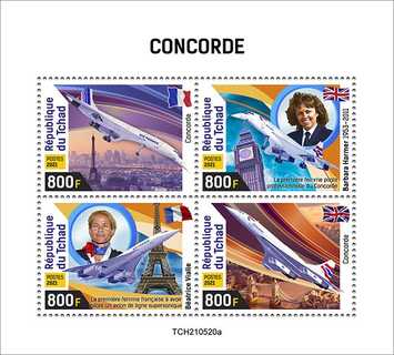 Sur le bloc de 4 Béatrice Vialle pour les avions français et Barbara Harmer pour les avions britanniques. Par contre, sur le bloc d'un seul timbre, seule apparait Barbara Harmer..